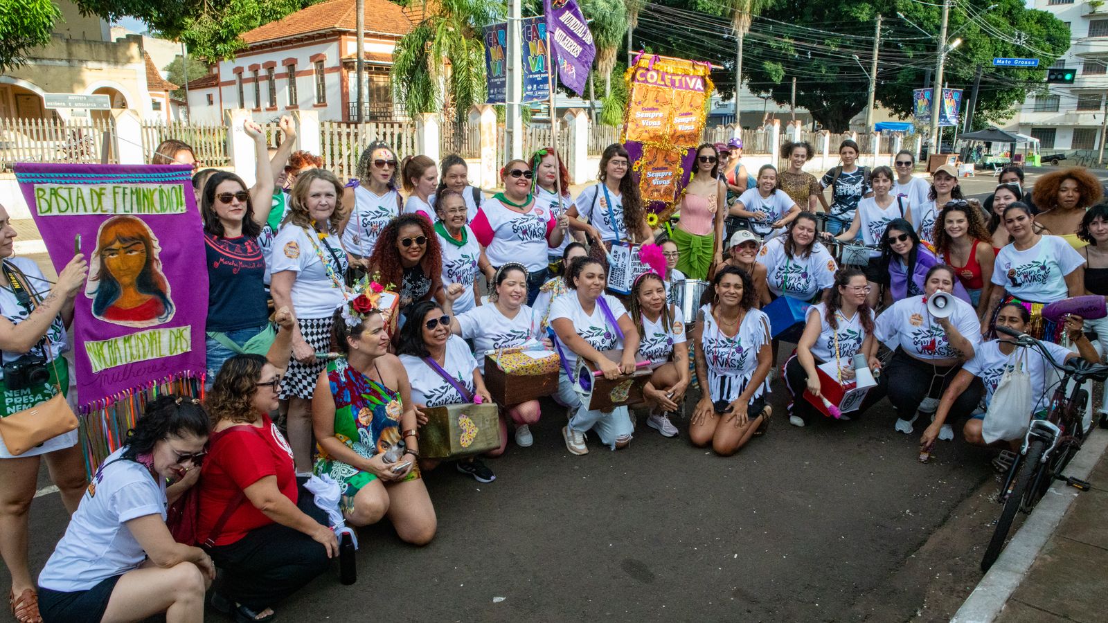 No dia 08 de março de 2025, em alusão ao Dia Internacional das Mulheres, o Comitê de Cultura de Mato Grosso do Sul, em parceria com a Marcha Mundial de Mulheres/MS e as organizações reunidas no ColetivA Sempre Vivas, realizou a atividade “Cortejo Cultural – Enterrando o Patriarcado”, como parte da programação de mobilização sociocultural. A atividade teve como objetivo principal promover uma ação de ocupação simbólica e política dos espaços públicos urbanos, utilizando o carnaval de rua como plataforma de expressão coletiva para enfrentamento à violência de gênero, ao feminicídio, à desigualdade estrutural e à invisibilização das mulheres nos espaços de poder e decisão.