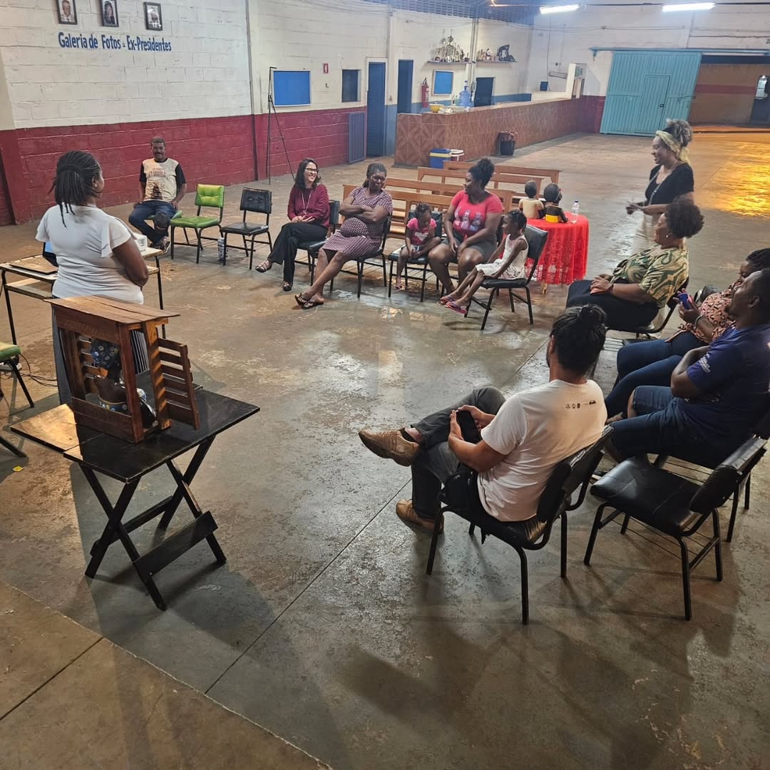A Comunidade Quilombola Tia Eva, localizada em Campo Grande, Mato Grosso do Sul, é reconhecida pela Fundação Cultural Palmares como uma comunidade urbana remanescente de quilombo desde 1905. Fundada por Eva Maria de Jesus, conhecida como Tia Eva, a comunidade possui um patrimônio cultural significativo, incluindo a Igreja de São Benedito, construída em 1912, e celebrações tradicionais como a Festa de São Benedito, realizada anualmente desde 1919. Inserida no âmbito das iniciativas vinculadas ao Mês da Consciência Negra, a ação promovida pelo Comitê de Cultura de Mato Grosso do Sul foi concebida como uma estratégia de engajamento comunitário e fortalecimento das manifestações culturais quilombolas. A Comunidade Quilombola Tia Eva, localizada em Campo Grande – MS, foi selecionada devido à sua relevância histórica e cultural, configurando-se como um polo representativo da cultura afro-brasileira no estado. A reunião contou com a participação dos moradores da comunidade, convocados pela liderança local.