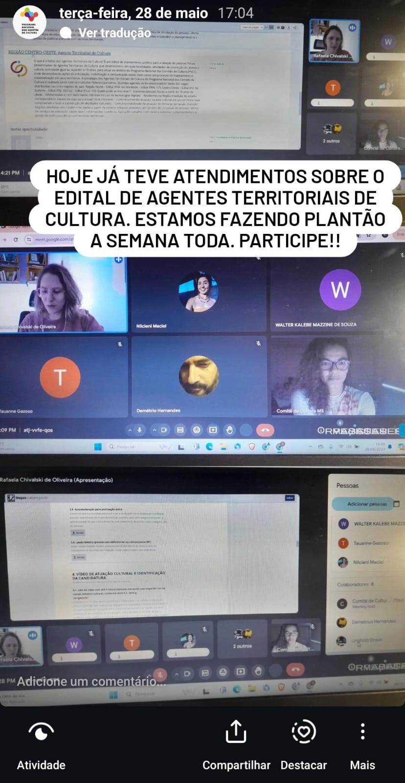 No contexto das políticas públicas voltadas para a democratização do acesso aos mecanismos de fomento cultural, o Comitê de Cultura de Mato Grosso do Sul, em parceria com o Instituto Federal de Mato Grosso do Sul (IFMS) e o Ministério da Cultura (MinC), desenvolveu uma iniciativa estruturada para capacitar agentes culturais e coletivos a partir do assessoramento técnico personalizado, no intuito de fortalecer a economia da cultura, a educação popular e o combate às desigualdades regionais e étnico-raciais. Assim, entre os dias 22 de maio e 07 de junho de 2024, foi realizada uma série de plantões online voltados para a elaboração de projetos culturais no âmbito do Edital Agentes Territoriais de Cultura.